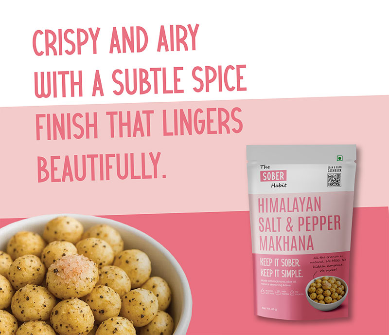 But The Sober Habit is more than just Makhana. We’re building a smarter snack culture from protein-packed peanuts and roasted chanas to guilt-free chips and refreshing drinks each crafted to deliver the perfect balance of taste, nutrition, and satisfaction.
